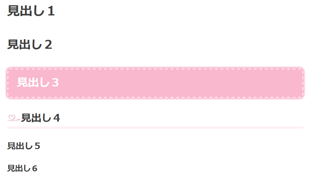当ブログでは見出しデザインをカスタマイズしてあるので、h3とh4は他と違うように表示されています。